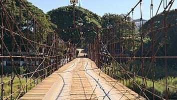 · Überquerung einer Eisen-Hängebrücke